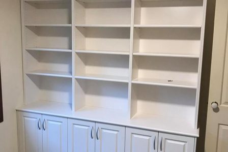 Are you in need of an innovative furniture or storage solution? Our fine craftsmen will work with you to bring your vision to reality. You too could enjoy an innovative and creative custom shelving unit just like this one from one simple phone call.