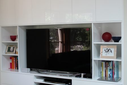 Are you in need of an innovative furniture or storage solution? Our fine craftsmen will work with you to bring your vision to reality. Just like in the photograph above, the TV entertainment unit was handcrafted by Sulway Joinery to compliment the clients lounge room which now provides an effective use of wall space, loads more storage compartments to keep those DVDs, CD and Novels in order. The added shelving space provides a nice organised and symmetrical display areas for your more important display items. You too could enjoy an innovative and creative custom entertainment unit just like this one from one simple phone call.